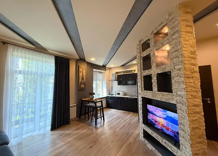 Выбирая отель Kyiv Paris Apartment, вы получаете быстрый доступ к Нулевому километру Украины, который находится в 5 минутах ходьбы. Отдохните в саду этого отеля, где балкон дополняют живописные пейзажи.